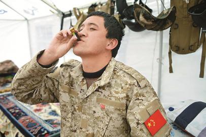 洪勇已连续14年在虫草季节带队进山。高原反应出现时,他喝一支肌苷口服液缓解症状。