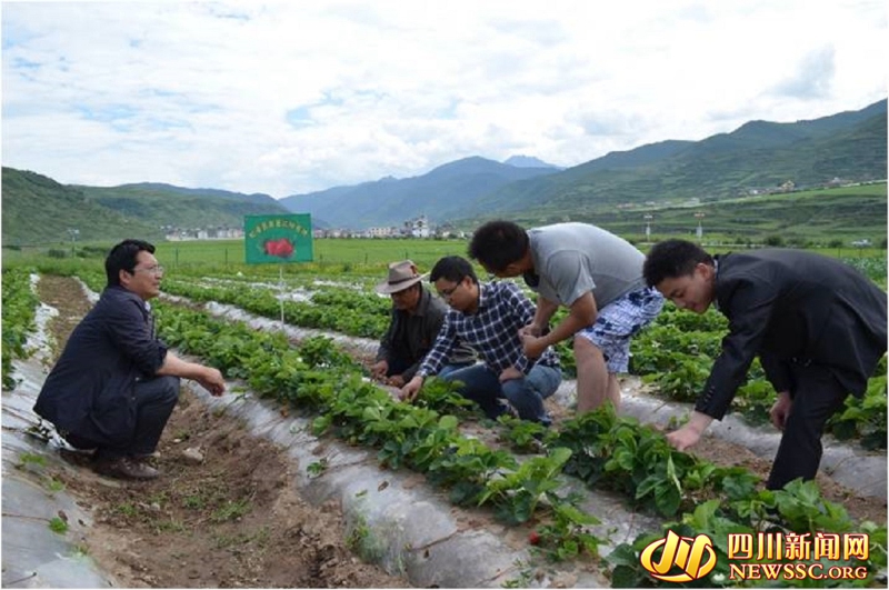 实际上,在多年的对口扶贫工作中,西南科技大学与松潘县结下了深厚的友谊。而该校生命科学与工程学院科技扶贫团队,更是积极发挥专业特长,帮助对口帮扶的贫困县增强“造血”功能。从2012年起,西南科技大学开始对口定点帮扶松潘县,陆续派出农学专家为松潘县的草莓产业把脉,西科大生命科学与工程学院副院长张猛副教授便是其中一位。在松潘县,专家们通过开展野生草莓种质资源的调查后,认为松潘县具有全国独特的生产夏秋季草莓的优势。随后,他们根据当地气候、土壤等自然条件,筛选出适宜松潘栽种的夏秋草莓品种,不仅填补了我国草莓全年供应中夏秋无草莓的空档,也为当地开创了扶贫新模式。2013年7月,当张猛等专家再一次来到松潘县高原夏秋草莓引种试验示范基地时,一望无际的草莓已长势喜人,且成熟期又恰逢松潘旅游旺季。张猛高兴地说道,这些草莓市场优势十分突出,既可自主采摘和就近销售,又可通过航空运送到全国各地销售;既为当地农牧民群众开辟新的收入来源,又为松潘现代农业发展增添了新的增长点。据了解,松潘县水晶乡寒盼村在成功引种夏秋草莓后,当地农民逐渐实现增收致富脱贫,农民收入由2013年4300元提升至13000元,收入增长2倍。