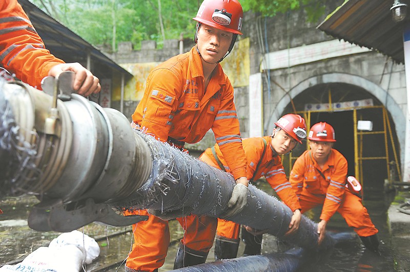 本报讯(记者刘星/文田为/图)5月19日,省安监局(四川煤监局)2016年矿山井下及地面洪涝抢险排水演练在大邑县举行。此次演练没有给参演队员发“脚本”,完全模拟现实并设置各种意想不到的突发情况,除正常排水科目外,还模拟了供电、排水管道故障以及城市内涝等突发情况,更接近实战,演练时间8个多小时。