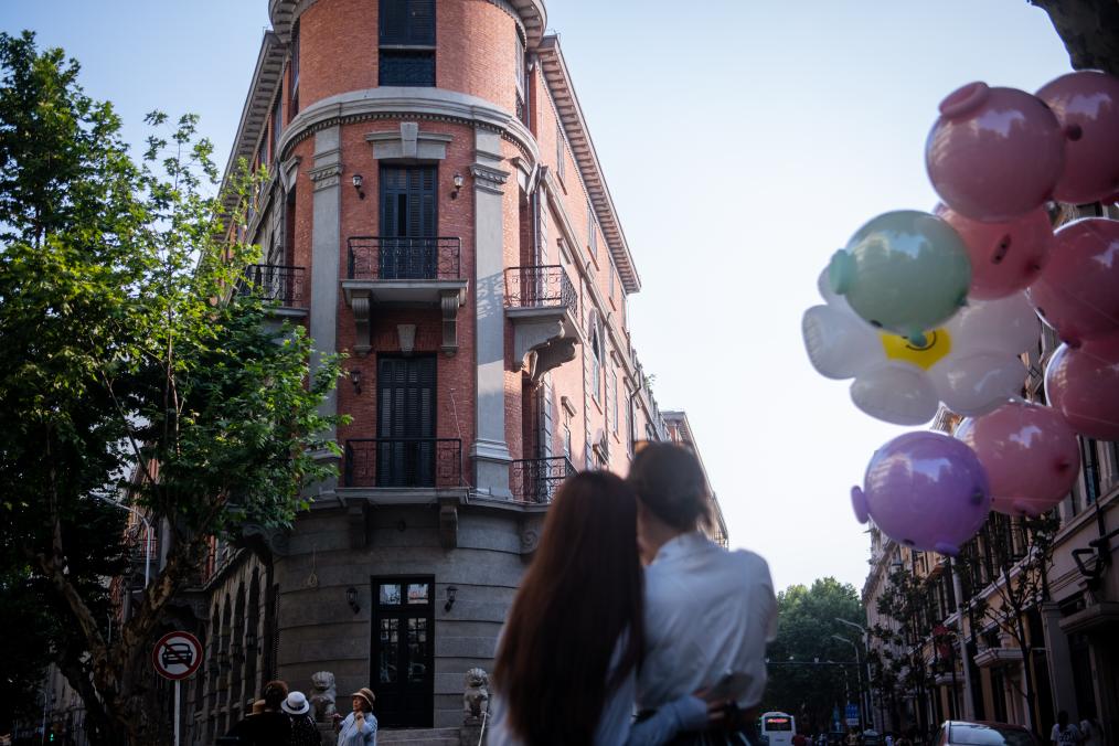 2023年6月6日,游客在武汉市汉口历史风貌区巴公房子前拍照。随着汉口历史风貌区旧城改造城市更新项目的推进,风貌区内一座座老建筑被修缮、改造,融入现代生活,焕发新的生命。新华社记者 伍志尊 摄