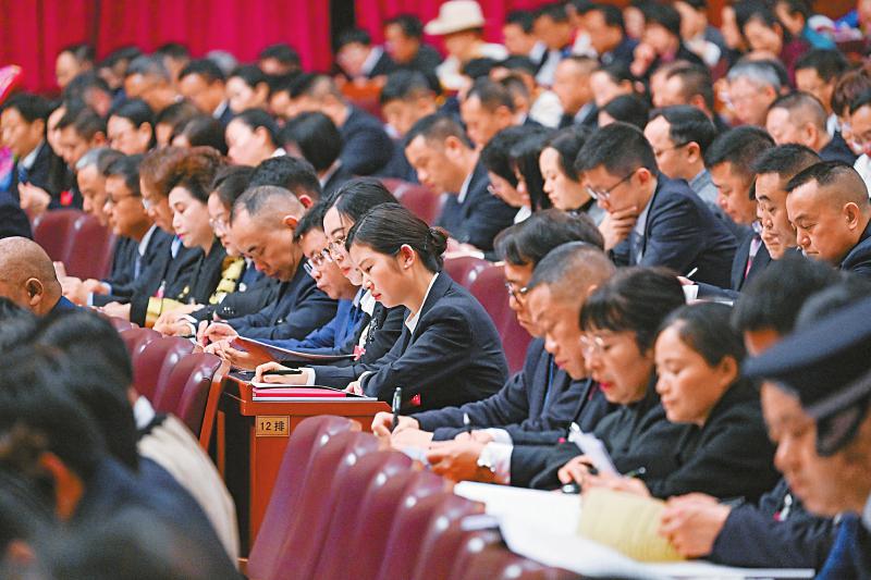 一月二十二日,代表们认真听取政府工作报告。四川日报全媒体记者何海洋摄