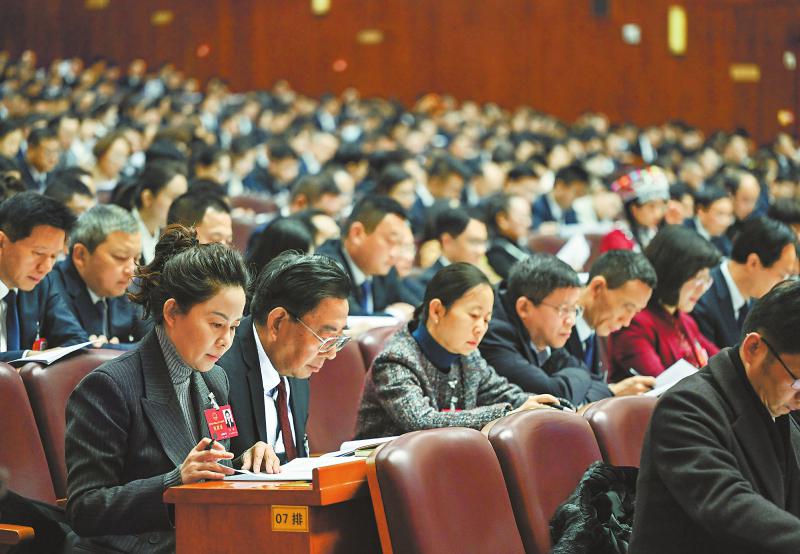 1月23日,省十四届人大二次会议举行第二次全体会议,这是代表们在听取省人大常委会工作报告。四川日报全媒体记者 何海洋 摄