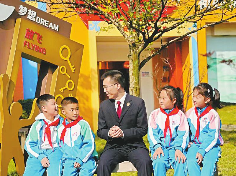 达州市通川区检察干警在校园开展法治宣传。