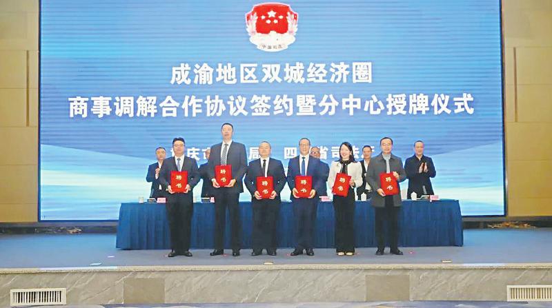 2023年12月8日,四川省司法厅、重庆市司法局联合举行成渝地区双城经济圈商事调解合作协议签约暨分中心授牌仪式。