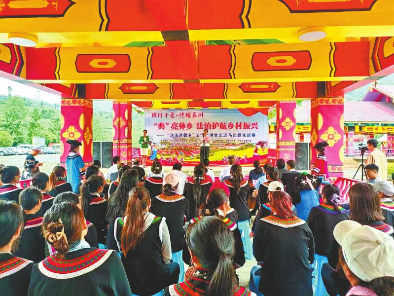 “送法进彝乡”法治大讲堂走进马边彝家新寨。 本文图片均由司法厅提供