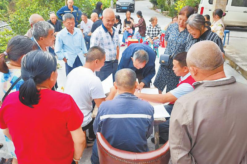 2023年7月4日,威远县越溪镇水源村3组国家储备林建设项目林地流转协议签订现场。威远县自然资源和规划局供图