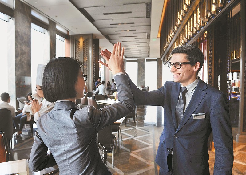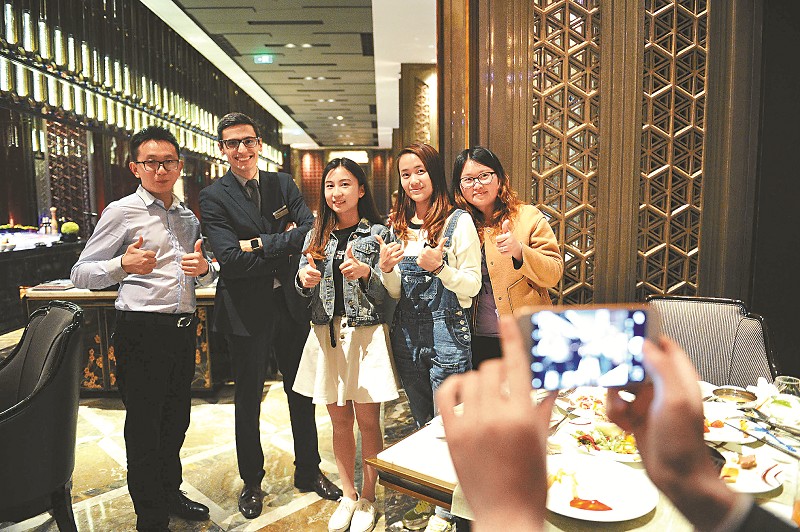 苏广博来自西班牙,他将自己姓名音译为中文“苏广博”,作为入乡随俗的通行证。28岁的他已经拥有十多年的酒店从业经验,先后在西班牙、德国、阿联酋工作。出于对中国文化的喜爱,去年到北京学习中文。半年前成都一家星级酒店开业,酒店负责人通过苏广博发布在社交网站上的个人履历相中了他,双方相谈甚欢,他很快接受了邀请。