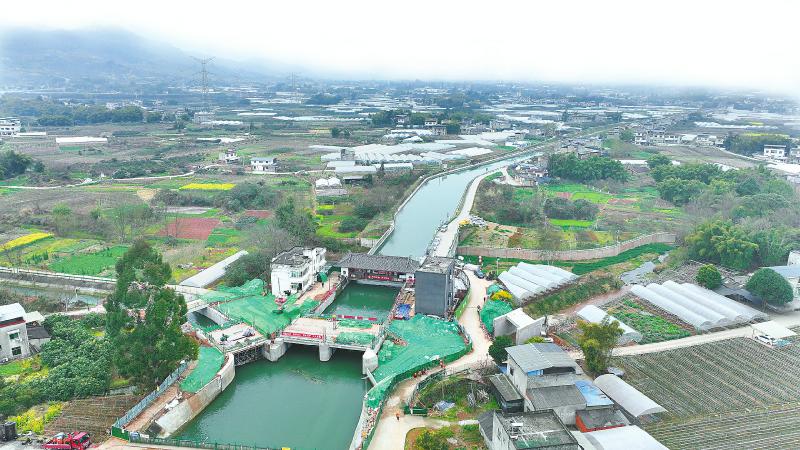 位于都江堰灌区东风渠总干渠上的罗家河坝枢纽。 四川日报全媒体记者 韦维 摄